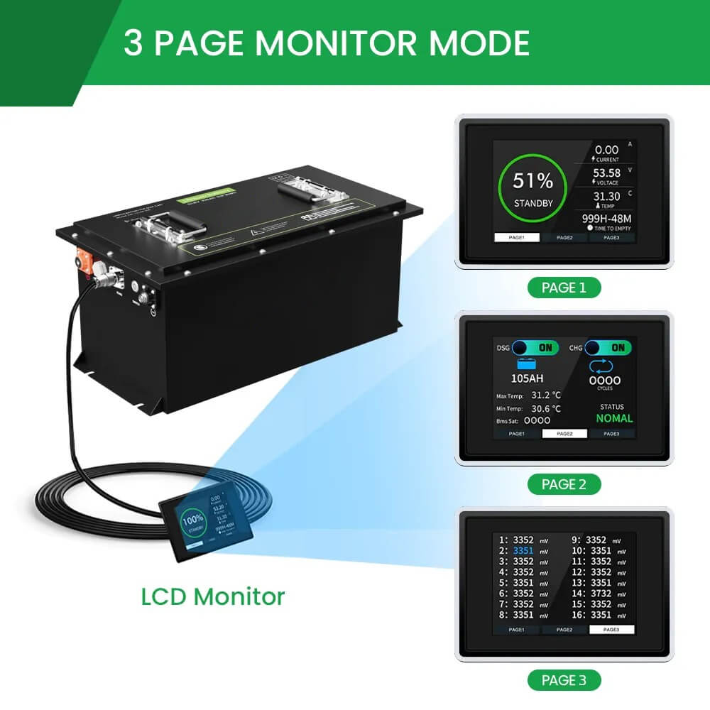 | LFP48-105 | 51.2V | 105Ah | 5376Wh | 530*290*240mm | ≈46kg |